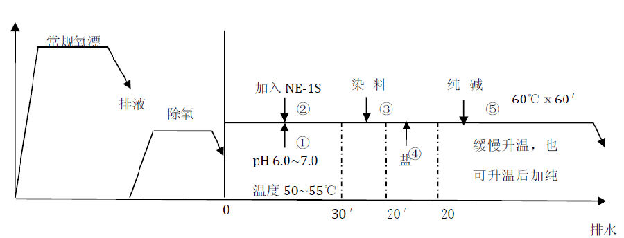 可与染料同浴使用,节能减排工艺曲线:
